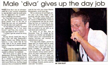 "A refreshing take on standards and originals from Tom Rust. Nicely interacting with a top-notch piano Trio led by Malcolm Edmonstone, Tom has the mature musicality to compliment a wonderful voice and is surely set for bigger things. Cullum and Connick Junior, watch out!"